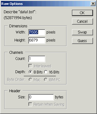 .3. Confirm that Dimensions Width and Height match the NS and NL values in metadata (header1.txt). ![]() 4. The image is grayscale. Ctrl+A to select the entire image and Ctrl+C to copy it to the clipboard. Create a new Photoshop image with a white background and RGB Color Mode. The size will default to the clipboard image size, which is what we want. ![]() 5. Open the Channels window, activate the Blue channel, and Ctrl+V to paste the band 1 image. Save the image as a Photoshop file (PSD).